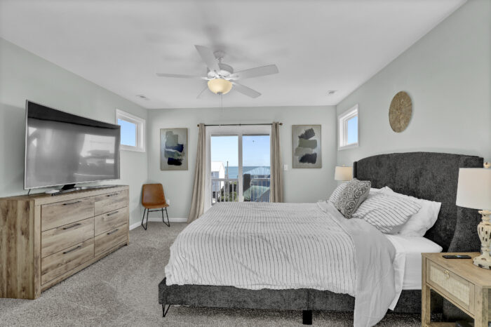 The house comfortably sleeps up to 10. There are two king and two queen bedrooms. And in a separate section of the master bedroom, there is a twin daybed that converts into another king. This setup is perfect for families with small kids, allowing you all to remain on the same floor, while other families occupy lower floors. We also have two pack n’ plays on site.